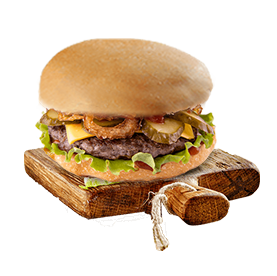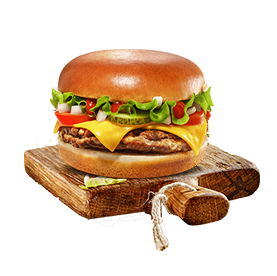 Pain brioché, 2 steaks 45gr, cheddar, crudités, sauce burger.