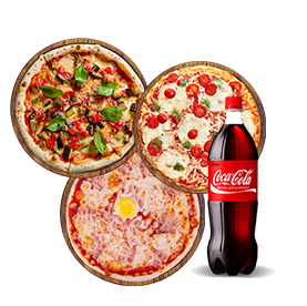 3 Pizzas Junior au choix + 1 Boisson 1.5l au choix.