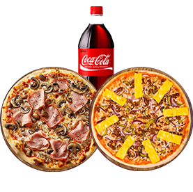 2 Pizzas Méga au choix + 1 Boisson 1.5l.
