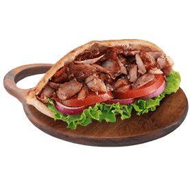 Pain maison, viande de kebab, crudités, sauce au choix.