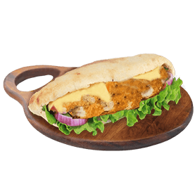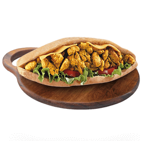 Pain maison, poulet tandoori, cheddar, crudités, sauce au choix.