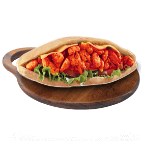 Pain maison, poulet tandoori, cheddar, crudités, sauce au choix.