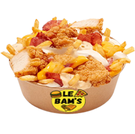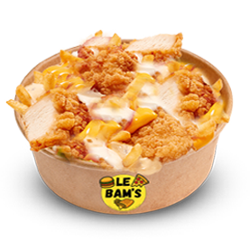 Frites, tenders, bacon, sauce cheddar, mozzarella.