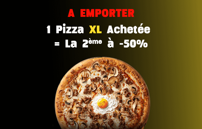 Tomate, fromage, double merguez, oignons, poivrons, olives, oeuf.